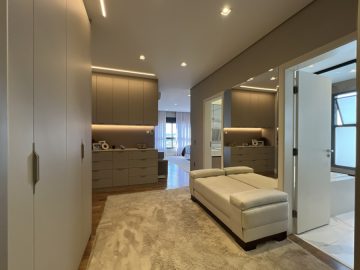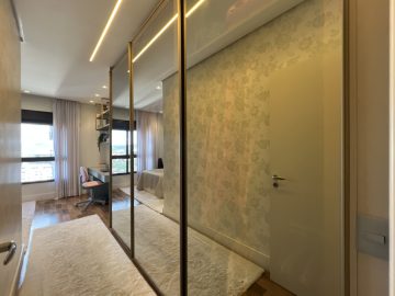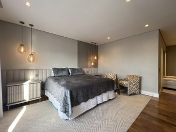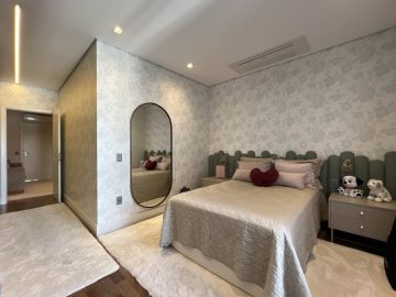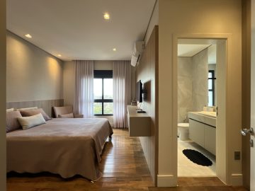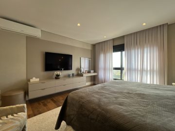 Suíte Master com banheiro Sr. e Sra. (duas cubas e dois chuveiros, se aplicável, ou banheiros separados).