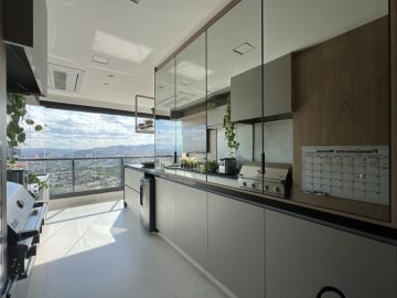 Varanda Gourmet Integrada à área social, equipada com churrasqueira a gás.