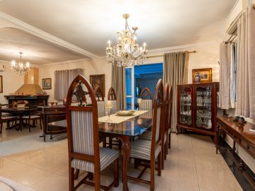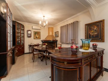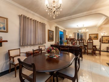 Esta casa com 350mt² de área útil, tem 4 amplas suítes, salas de TV, sala íntima, sala de almoço, sala de jantar, sala de lareira, escritório e duas vagas de garagem cobertas e duas descobertas.