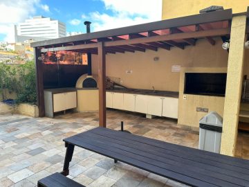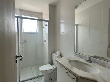 O imóvel conta com 2 dormitórios, 1 banheiro moderno e funcional, além de 1 vaga de garagem fixa e demarcada, garantindo comodidade e segurança no dia a dia. Localizado em andar alto, o apartamento proporciona uma vista privilegiada para Alphaville, um dos bairros mais valorizados da região, permitindo desfrutar de momentos de tranquilidade e contemplação.