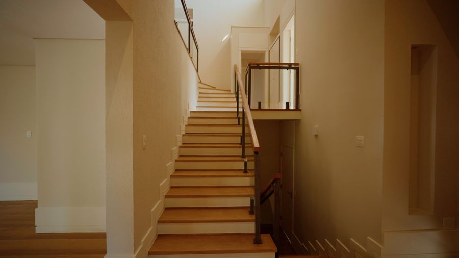 No piso térreo, o hall de entrada acolhedor conduz a um escritório com vista para o jardim frontal e a um amplo living para três ambientes, ideal para receber com sofisticação. A copa e cozinha, repletas de armários, são conectadas a uma área gourmet equipada com churrasqueira. O jardim com deck e piscina cria um refúgio perfeito para relaxar. A área de serviço é funcional e bem planejada, com dependência para empregada.
