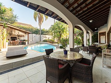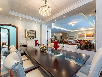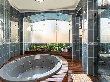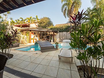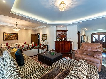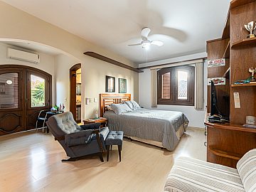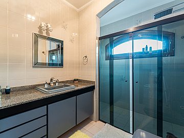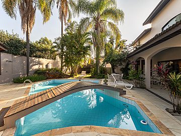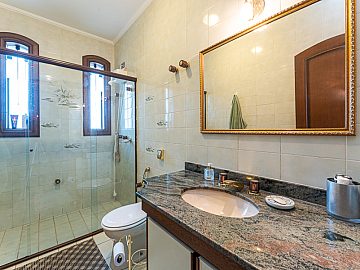 Suítes e Dormitórios: A casa dispõe de 5 suítes e 6 dormitórios no total, garantindo espaço e privacidade para toda a família. São 8 banheiros (excluindo o lavabo).