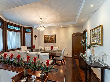 Salas Acolhedoras: Desfrute de momentos inesquecíveis na sala com lareira, perfeita para as noites mais frias. Além disso, a residência conta com uma sala de jantar elegante e uma sala de estar convidativa, ideais para receber amigos e familiares.