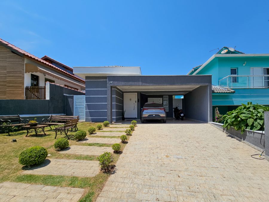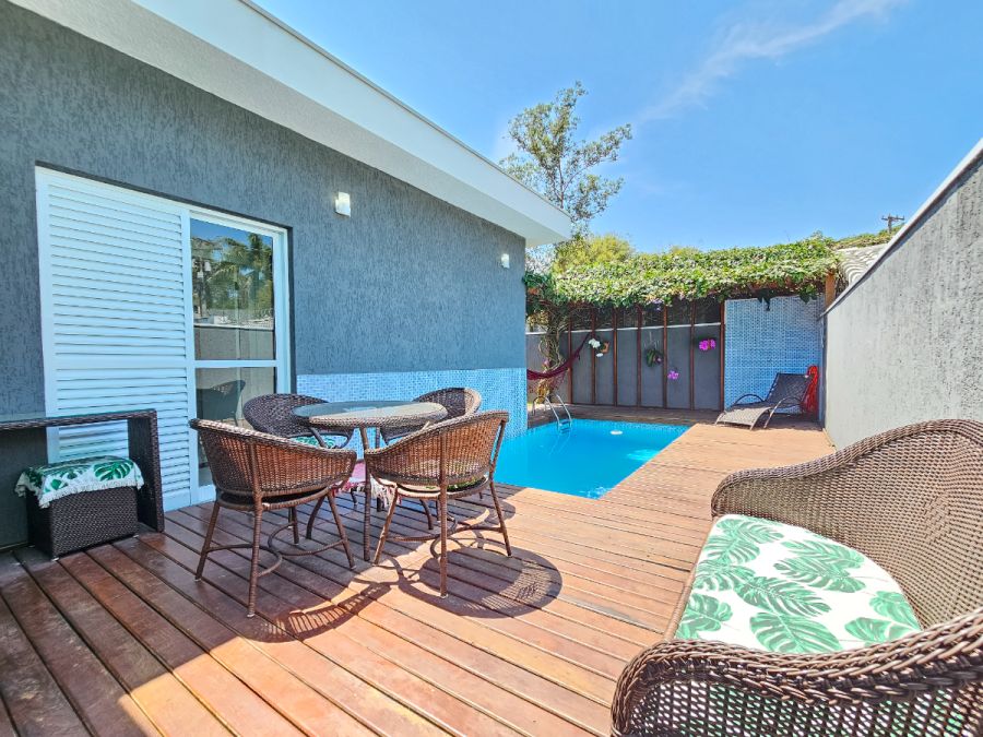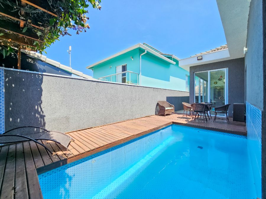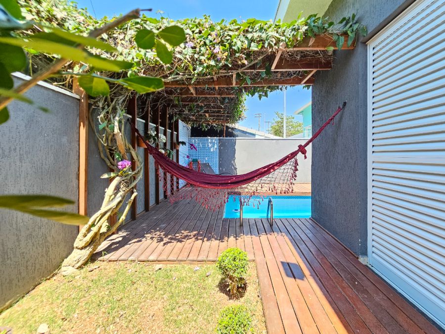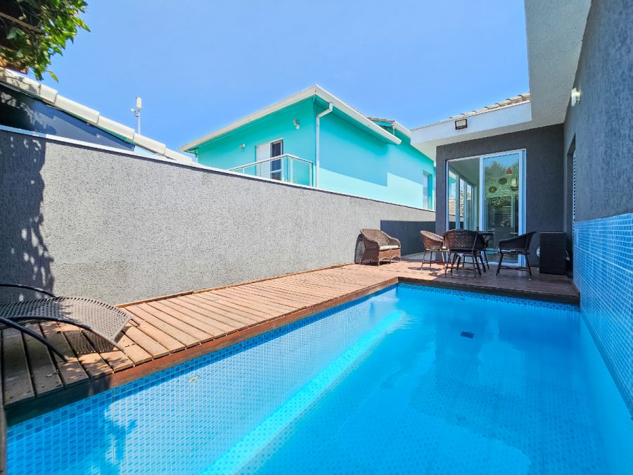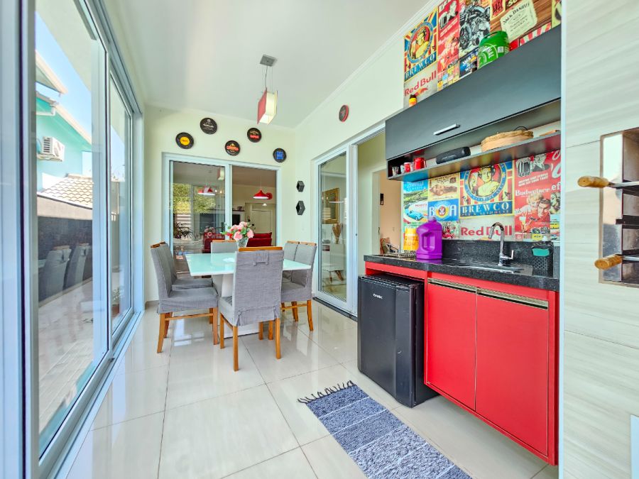 Na área externa, o destaque fica por conta da piscina aquecida com deck e varanda gourmet envidraçada integrada com a sala, perfeitas para momentos de lazer e confraternização durante o ano todo. A casa conta ainda com garagem para 4 veículos, sendo 2 cobertos e 2 descobertos.