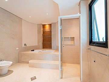 - Na suíte Master: Closet amplo e banheiro reformado com banheira de hidromassagem e sistema de aquecimento de piso