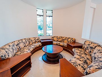 - Ampla sala de visitas, sala de estar com lareira e sala de jantar com ar condicionado