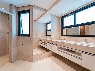 - Na suíte Master: Closet amplo e banheiro reformado com banheira de hidromassagem e sistema de aquecimento de piso