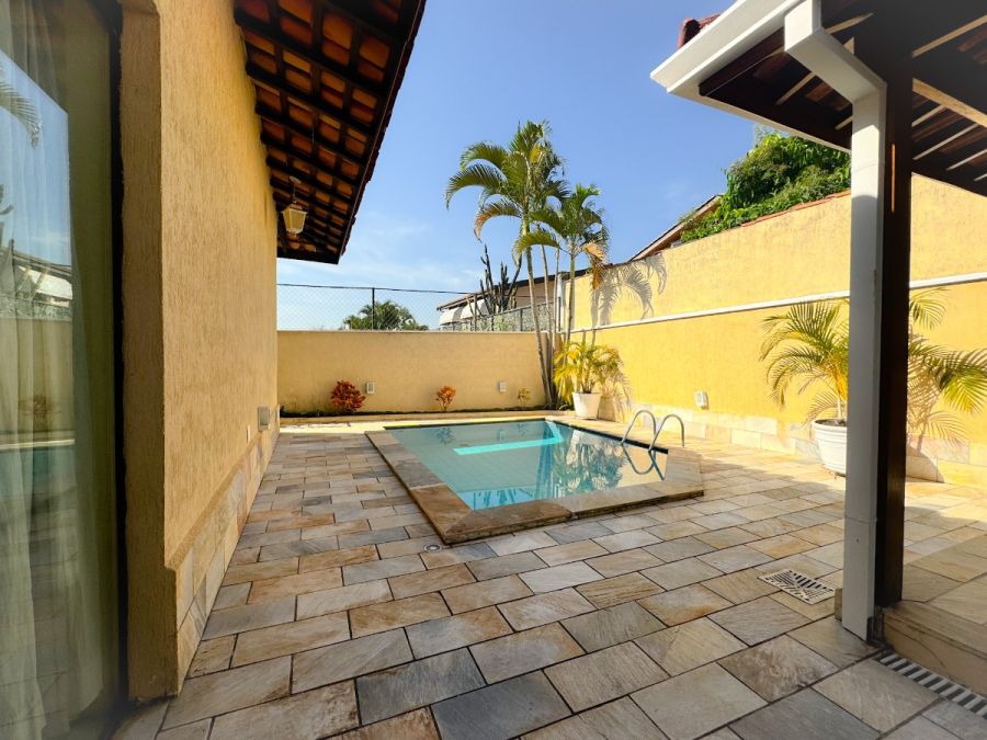 Esta casa semi-térrea, tem todos aposentos em um mesmo plano, no Alphaville 4, oferece um excelente espaço para viver, com áreas de lazer como piscina e churrasqueira, além de tecnologias sustentáveis como aquecimento solar e energia fotovoltaica.