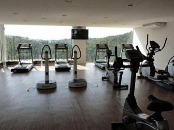 Academia panorâmica, sala de ginástica e pilates