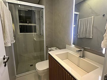 O imóvel está em um condomínio fechado moderno, com portaria 24 horas, sistema de segurança, áreas de convivência e lazer para toda a família, oferecendo piscina, academia, salão de festas, quadra, playground e áreas verdes. O condomínio aceita animais de estimação.