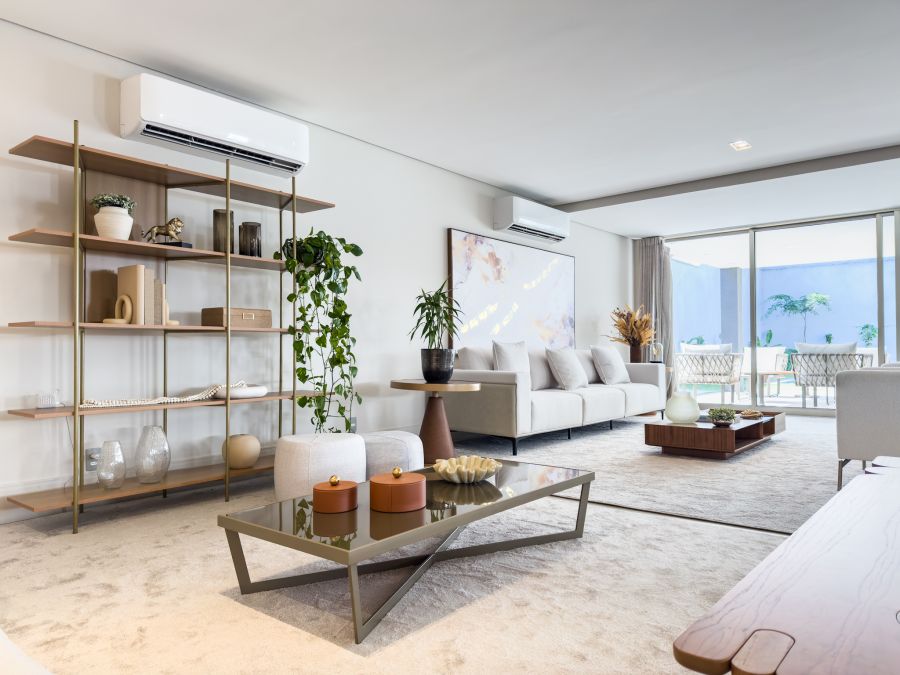 Entre os diferenciais, a residência apresenta um alto nível de especificações: sistema de ar-condicionado VRF em todos os ambientes, piscina com aquecimento solar, sistema completo de água quente com boiler, aquecimento solar e apoio a gás, tubulações em PEAD, entrada de energia trifásica com 74 kW instalados, caixas d'água em aço inox com pressurização, piso preparado para instalação de adega climatizada com isolamento térmico, além de esquadrias AlluNove e porcelanato Portobello Barlavento Caribbean na piscina e escada.