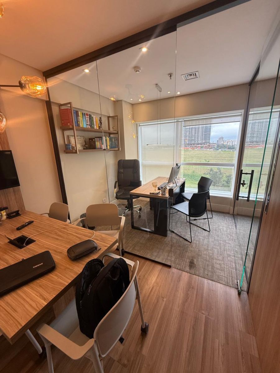 Com 42m², a unidade está 100% mobiliada e conta com decoração de alto padrão, ideal para receber clientes e trabalhar com elegância e funcionalidade.